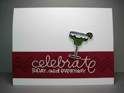 A co-worker asked for a few birthday cards and a baby card today so I had a busy afternoon making those for her.  I decided to use the colours from Dynamic Duos for one of the birthday cards.  I love this oversized Paper Smooches sentiment and it seems to go perfectly with the margarita from Market Street Stamps.  Some VersaMark chevrons in the background and some Rock Candy Stickles on the rim of the glass and it was good to go!