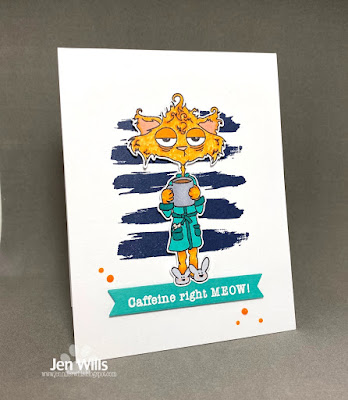 Lol Jen, your caffeine cards are really making me laugh! Love the bunny slippers on this cat! Vicky x